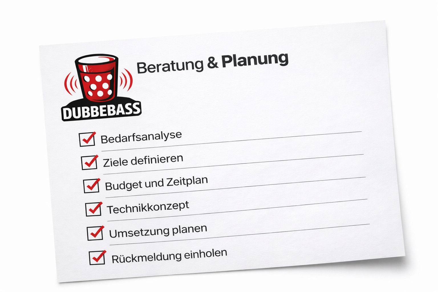 Du suchst nach professioneller Unterstützung für Dein nächstes Event? Bei DUBBEBASS bieten wir Dir maßgeschneiderte Beratungsleistungen, um Deine Veranstaltung zu einem Erfolg zu machen. Lass uns gemeinsam Deine Visionen in die Realität umsetzen.